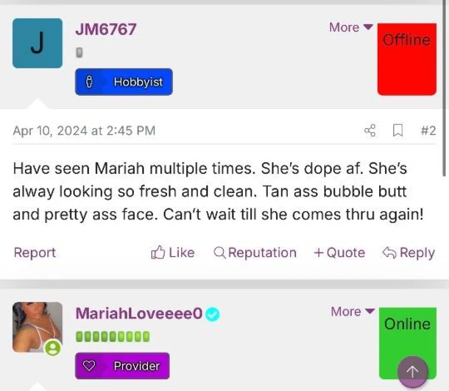 Hello Baby, Come relax & unwind as we enjoy each others company as well as getting to know your deepest fantasies and desires. Just let me ease your mind in a way that will blow you away! TNA Board Verified 5 ⭐Provider Handle - (Mariahloveeee0) Adequate Hygiene Is A MUST & No Exceptions Clean Gentleman ONLY! 🚫 NO GAMES 🚫 NO BB 🚫 NO GFE 🚫 NO AA Available For Incall/Outcall. Dinner/social dates, Fetish sessions, Duo (Multiple Girls) sessions, bachelor parties, exclusive travel, OVERNIGHT stays. Book your appointment via text/call now & Let me fulfill all your fantasy's & deepest desires. My photos are 100% real. 📸 Xoxo, Mariah Love